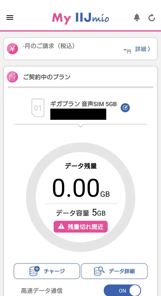 複数SIMでデータシェアをすると回線のデータ残量が0になる