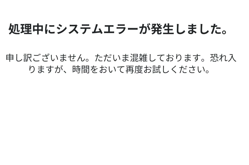 - 処理中にシステムエラーが発生しました。