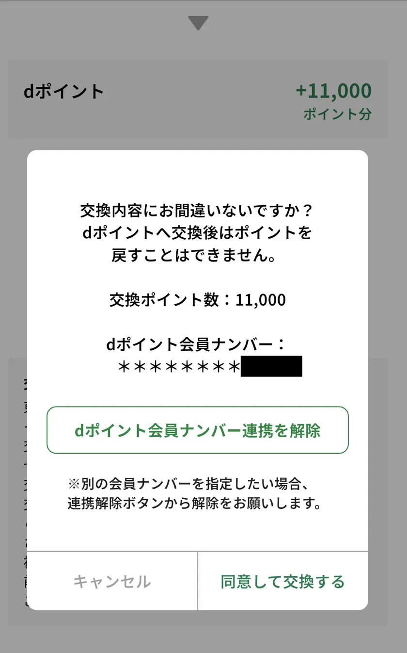 管理人は交換後に10%増量キャンペーンをしているdポイントに交換しましたが、2~30回はやり直したでしょうか。